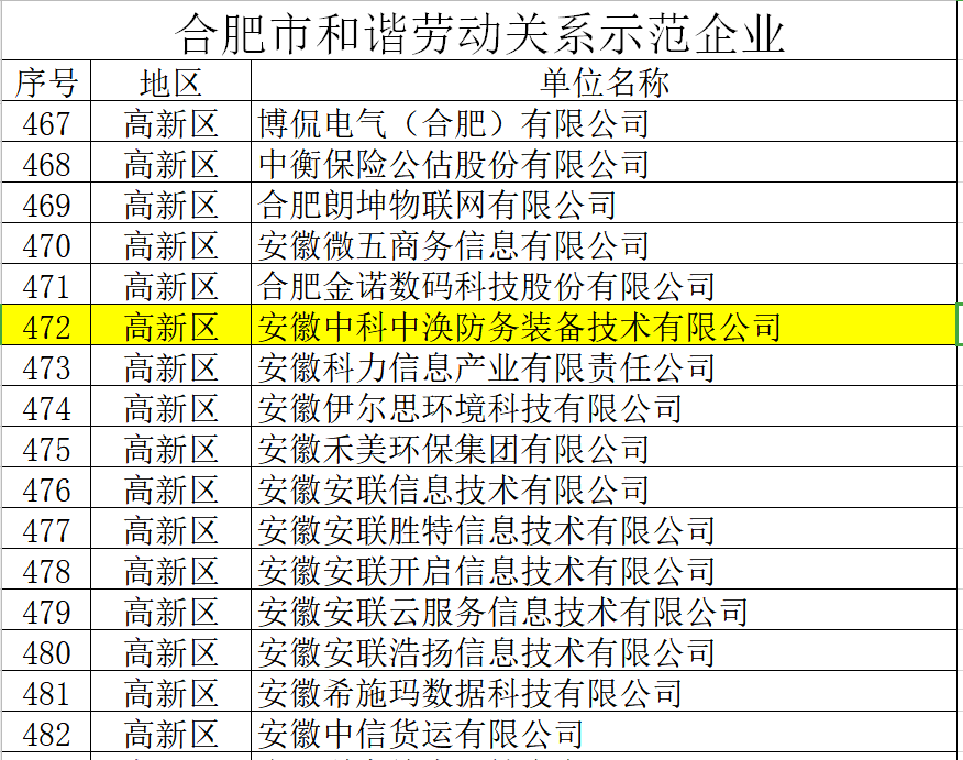 【中科中渙】榮獲合肥市和諧勞動(dòng)關(guān)系示范企業(yè)