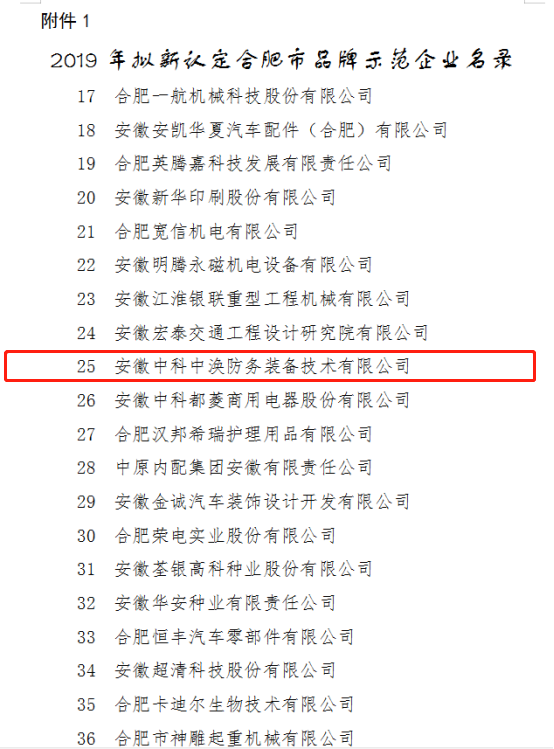 為加快實(shí)施品牌驅動(dòng)發(fā)展戰略,促進(jìn)產(chǎn)業(yè)、產(chǎn)品結構優(yōu)化升級和經(jīng)濟增長(cháng)方式轉變,市經(jīng)信局開(kāi)展了2019年合肥市品牌示范企業(yè)認定工作。根據《合肥市品牌示范企業(yè)認定管理辦法(試行)》要求評審研究,共認定安徽中科中渙防務(wù)裝備技術(shù)有限公司等82家企業(yè)為2019年度合肥市品牌示范企業(yè)。