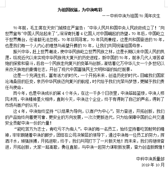 慶祝新中國成立70周年—中科中渙為祖國祝福