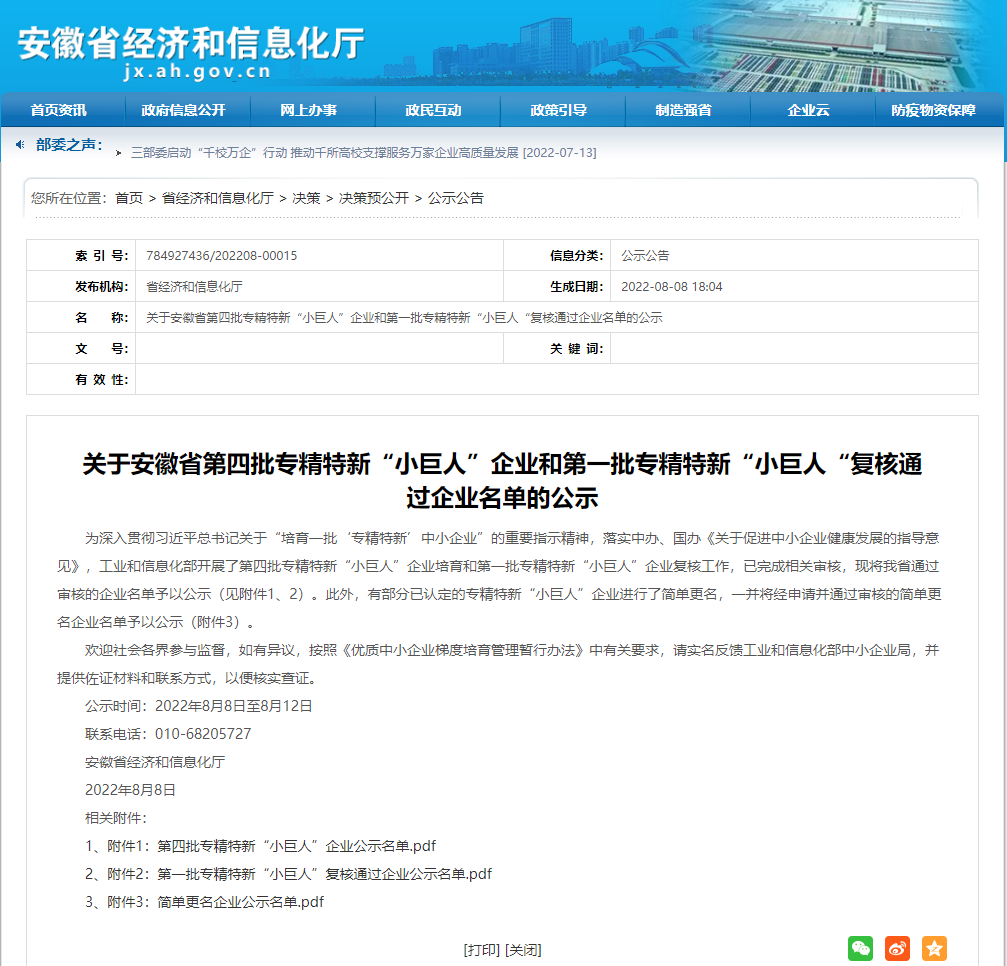 中科中渙從2020年安徽省“專(zhuān)精特新”中小企業(yè)、2021年安徽省專(zhuān)精特新冠軍企業(yè),到今年的國家級專(zhuān)精特新“小巨人”企業(yè),三年時(shí)間完美實(shí)現了“三級跳”,不斷受到社會(huì )各界及政府的認可與肯定。