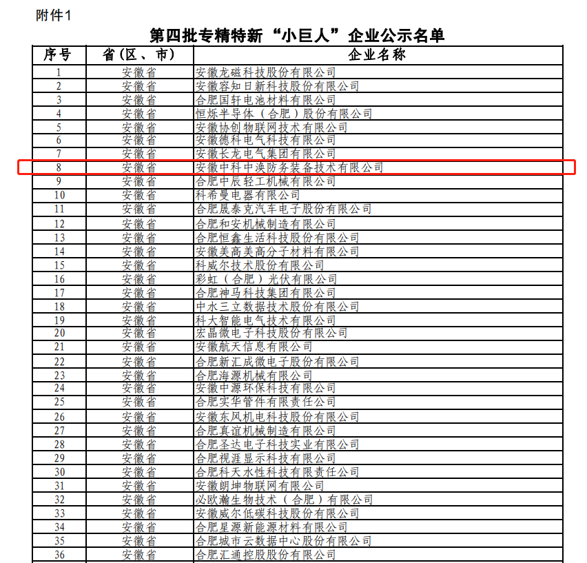 為深入貫徹習近平總書(shū)記關(guān)于“培育一批‘專(zhuān)精特新’中小企業(yè)”的重要指示精神,落實(shí)中辦、國辦《關(guān)于促進(jìn)中小企業(yè)健康發(fā)展的指導意見(jiàn)》,工業(yè)和信息化部開(kāi)展了第四批專(zhuān)精特新“小巨人”企業(yè)培育和第一批專(zhuān)精特新“小巨人”企業(yè)復核工作。日前,安徽省經(jīng)信廳公示了復核通過(guò)的企業(yè)名單,全省新增259家專(zhuān)精特新“小巨人”企業(yè),其中,安徽中科中渙防務(wù)裝備技術(shù)有限公司成功入選國家級第四批專(zhuān)精特新“小巨人”企業(yè)。