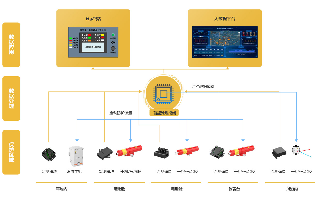 | 9 | 監測區域 | 電池艙、高壓艙、電器艙、車(chē)輛風(fēng)道、車(chē)廂內、儀表臺等 |