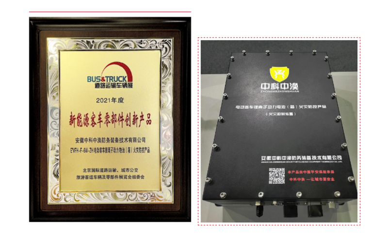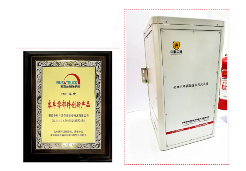 公共汽車(chē)固定滅火系統榮獲“2021年度客車(chē)零部件創(chuàng )新產(chǎn)品”;電動(dòng)客車(chē)鋰離子動(dòng)力電池(箱)火災防控產(chǎn)品榮獲“2021年度新能源客車(chē)零部件創(chuàng )新產(chǎn)品”。