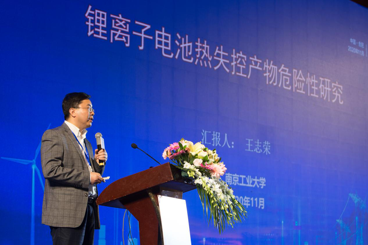 2020年11月18—20日,2020儲能安全國際高峰論壇在合肥世紀金源大飯店召開(kāi),會(huì )上,南京工業(yè)大學(xué)教授王志榮發(fā)表了題為“鋰離子電池熱失控產(chǎn)物危險性研究”的主題演講,分別從研究背景、熱失控產(chǎn)氣過(guò)程及其釋放氣體危險特性、熱失控固體產(chǎn)物危害特性及形成機理、研究展望四個(gè)方面進(jìn)行闡釋。